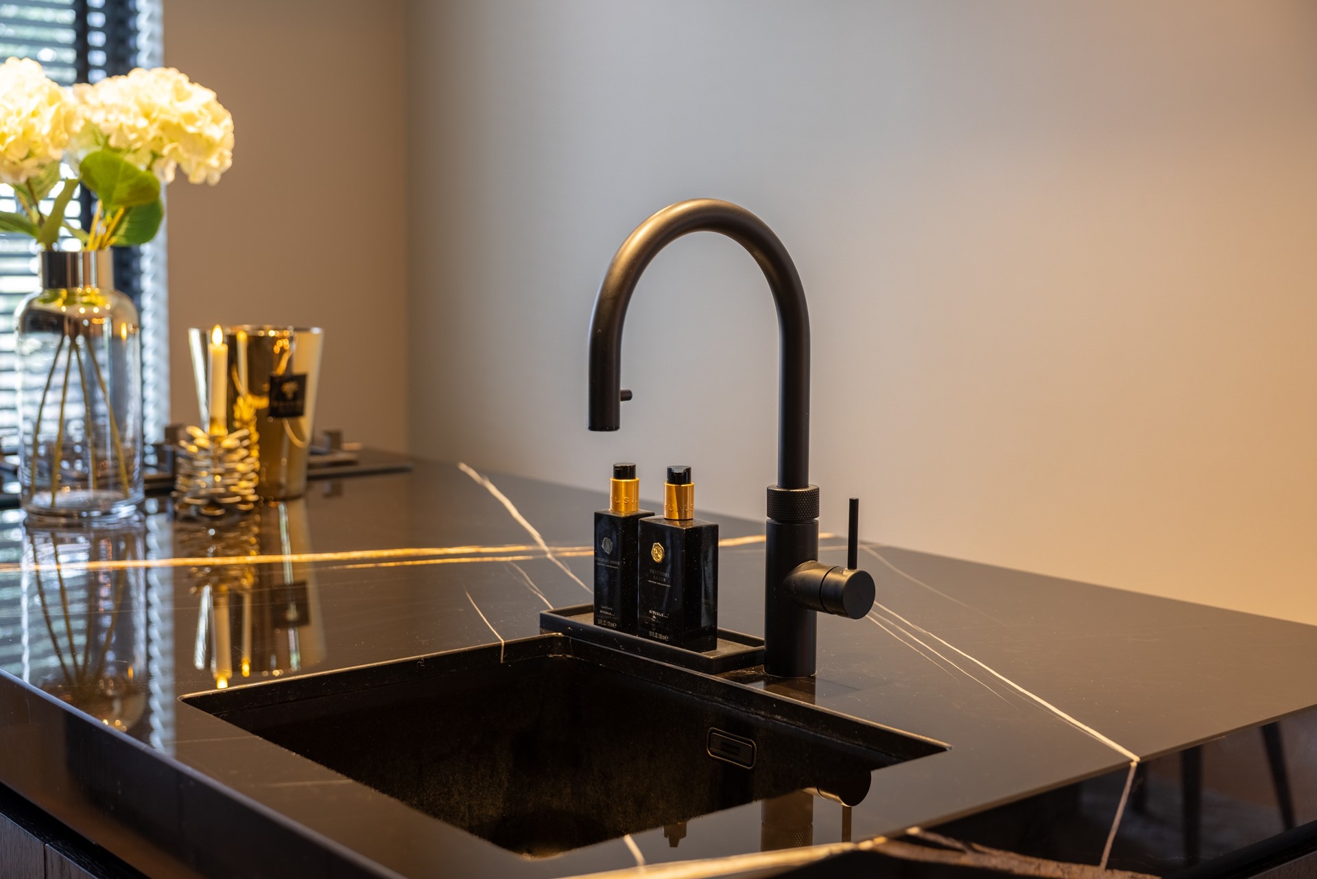 De indeling van deze woning is doordacht en sluit naadloos aan op de eisen van het moderne gezin. Wanneer je de lichte woonkamer binnenkomt, ervaar je direct de ruimte en het maximale comfort. De grote raampartijen en 2x openslaande deuren zorgen voor een zee aan daglicht en geven vrij zicht op de royale diepe tuin die op het zonnige zuidwesten is gelegen. In de luxe keuken, waar koken een feestje wordt, heb je moderne apparatuur en meer dan genoeg werkruimte – ideaal voor zowel doordeweekse maaltijden als gezellige etentjes met vrienden.