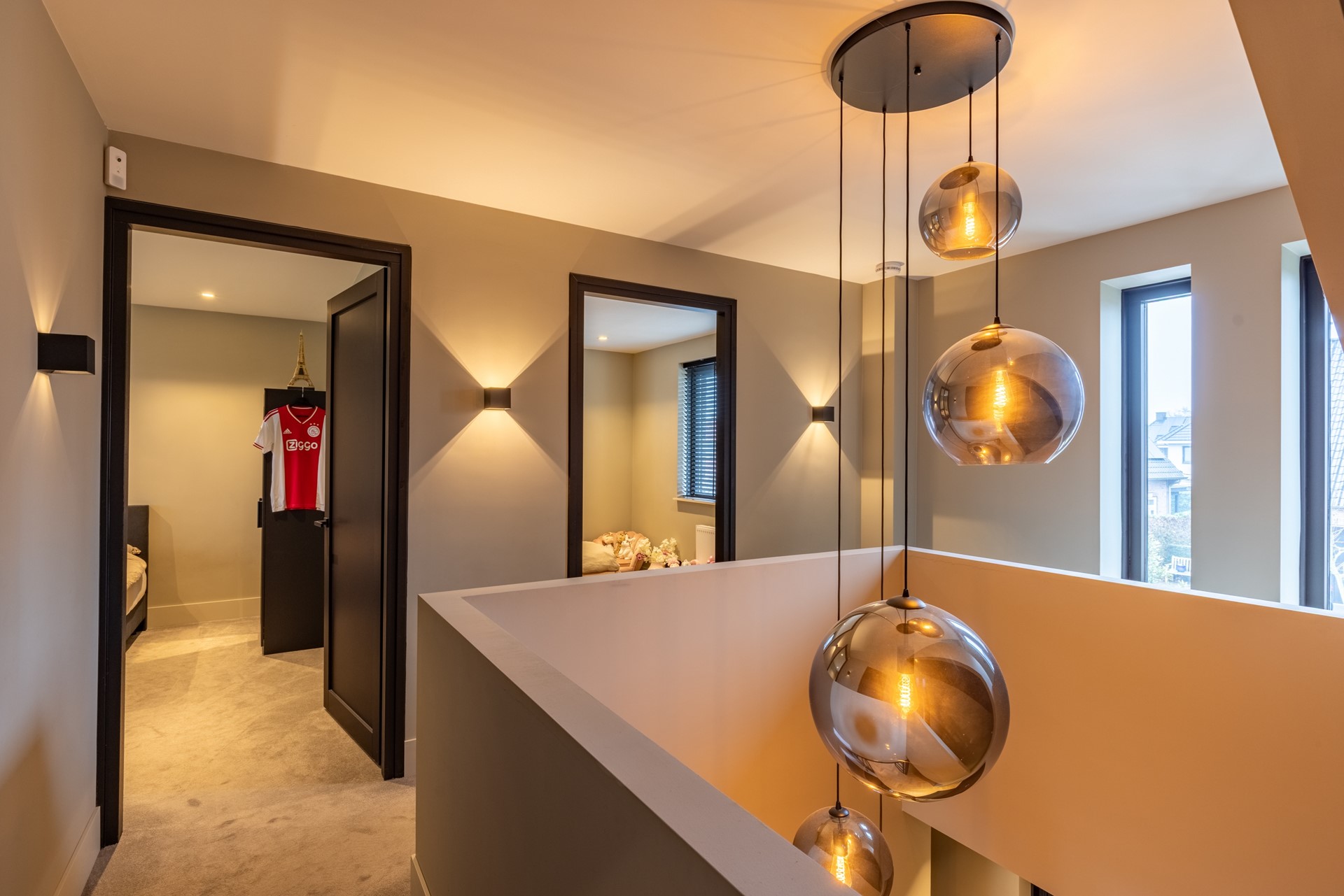 Overloop, 3 ruime slaapkamers (waarvan de ouderslaapkamer een doorloop heeft naar de ruime praktische inloopkast) moderne luxe badkamer voorzien van vloerverwarming, inloopdouche, ligbad, 2e wandcloset en dubbel wastafelmeubel;